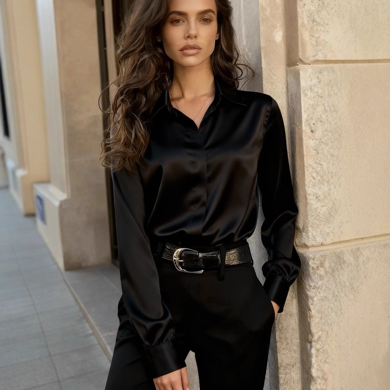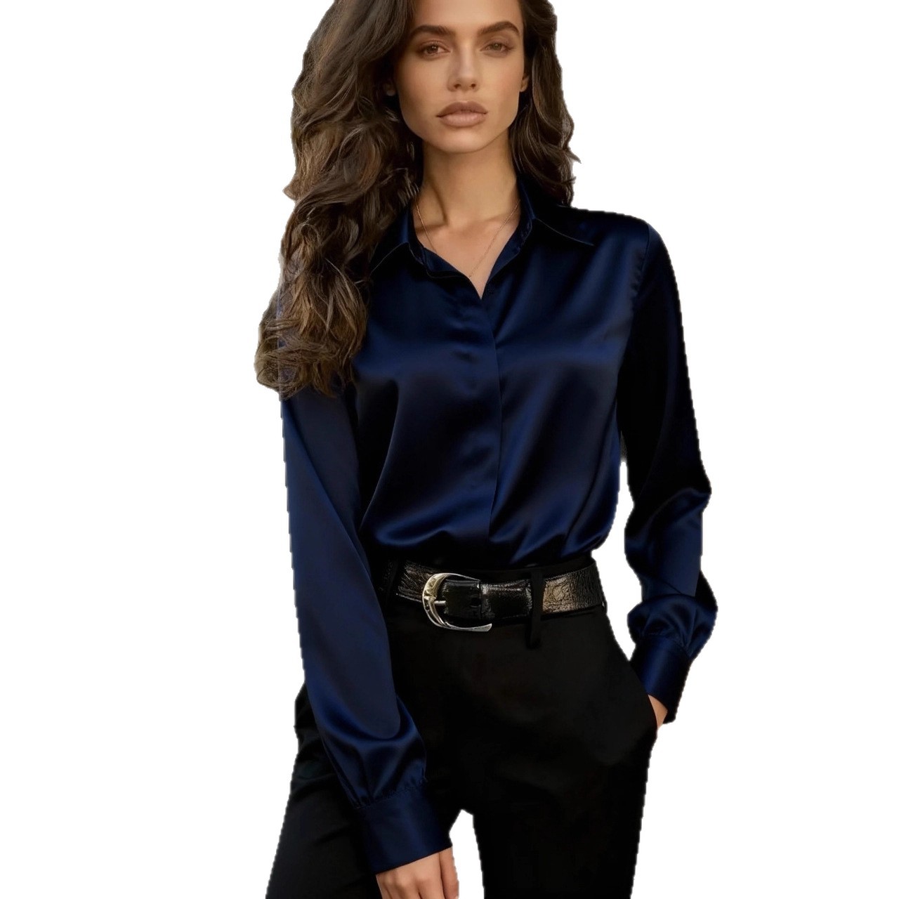 Autumn Commuting Versatile Long Sleeve Turn-down Collar Satin Women's Shirt