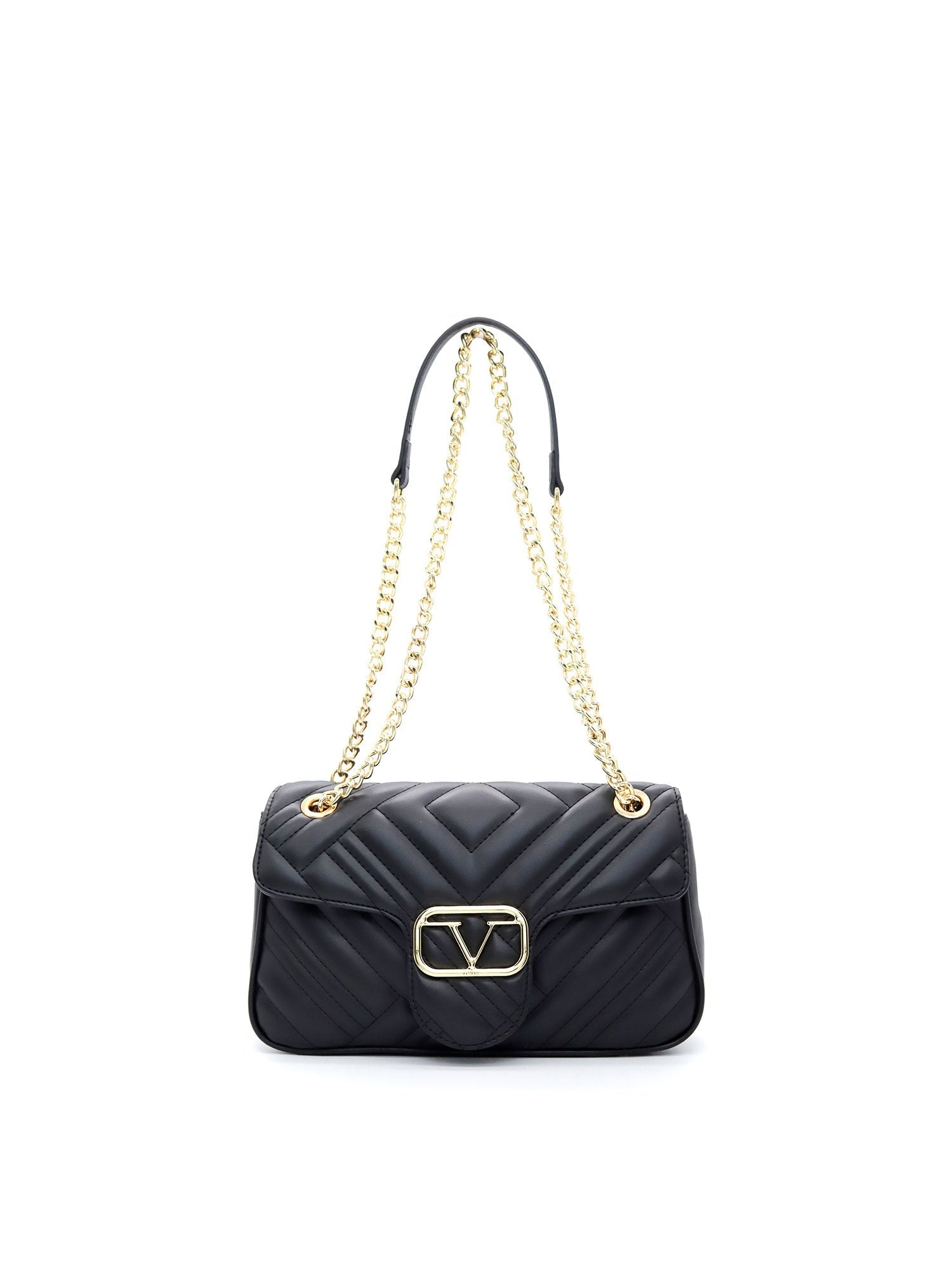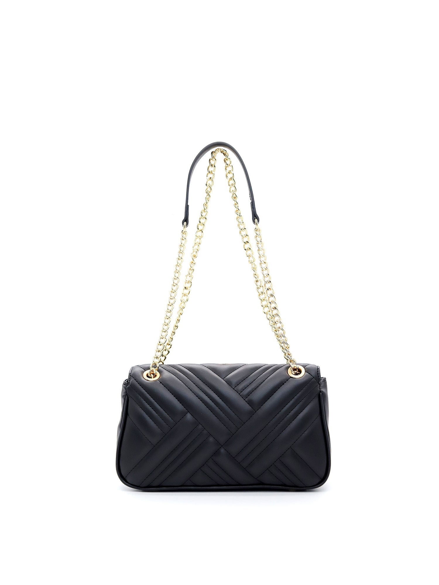 Borsa a tracolla da donna. La chiusura è con bottone magnetico. Le tasche interne sono una con zip. Le tasche esterne sono assenti. La tracolla è in catena e ecopelle. Il manico è assente. Gli scomparti interni sono uno. Il materiale esterno è ecopelle. Internamente è foderato in poliestere. Misure: . Prodotto Fashion