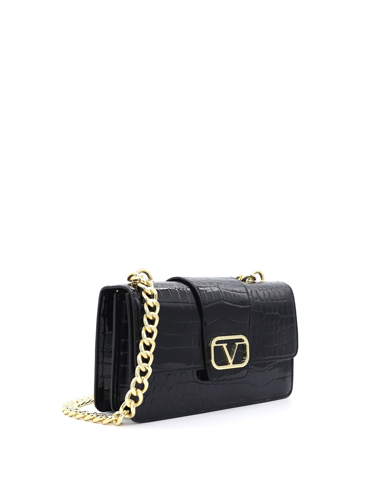 Borsa a tracolla da donna. La chiusura è con bottone magnetico. Le tasche interne sono due con zip. Le tasche esterne sono assenti. La tracolla è catena. Il manico è assente. Gli scomparti interni sono due. Il materiale esterno è ecopelle. Internamente è foderato in poliestere. Misure: . Prodotto Fashion