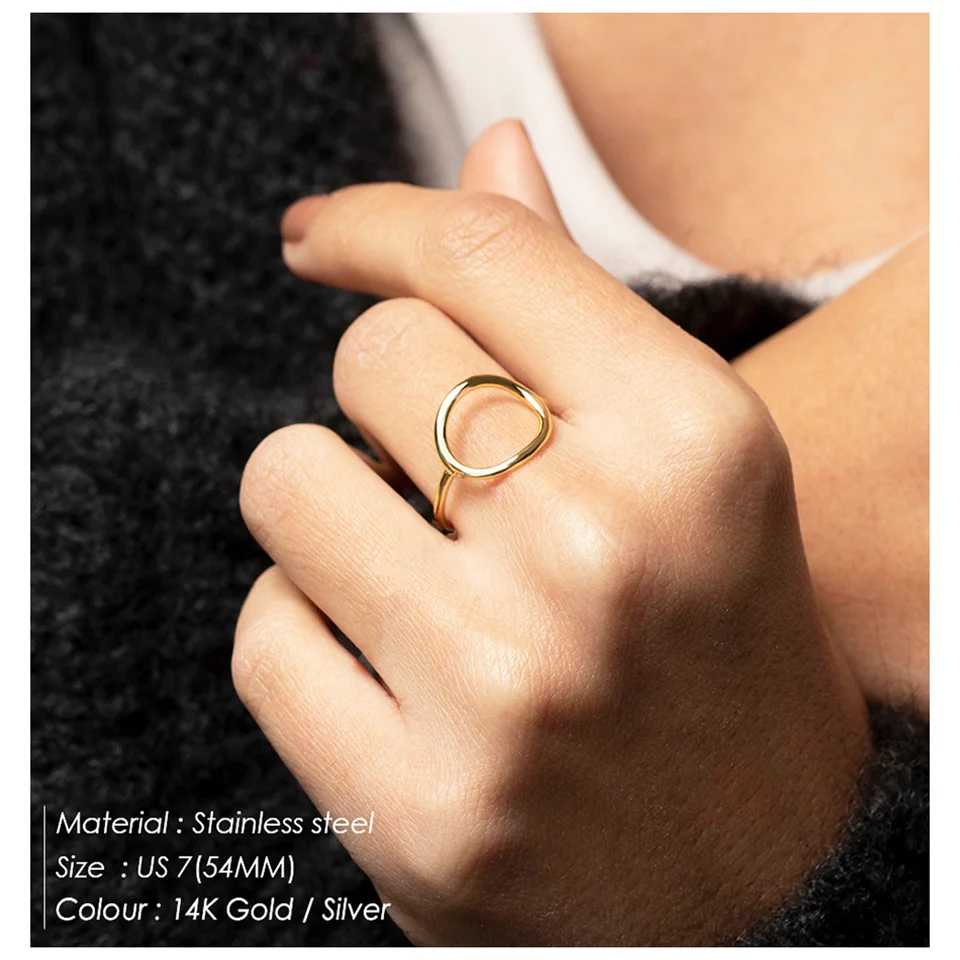 e-Manco Trendy Stainless Steel Rings for Women Vintage Geometric Pinky Ring Dainty Stackable Round Midi Rings Jewellery