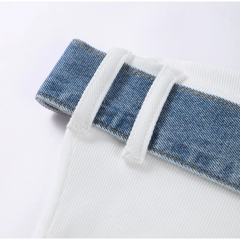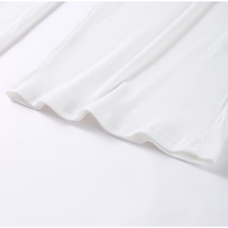 Note: The white knit fabric is slightly sheer. If you prefer full coverage (to avoid pants showing through), we recommend sizing up.