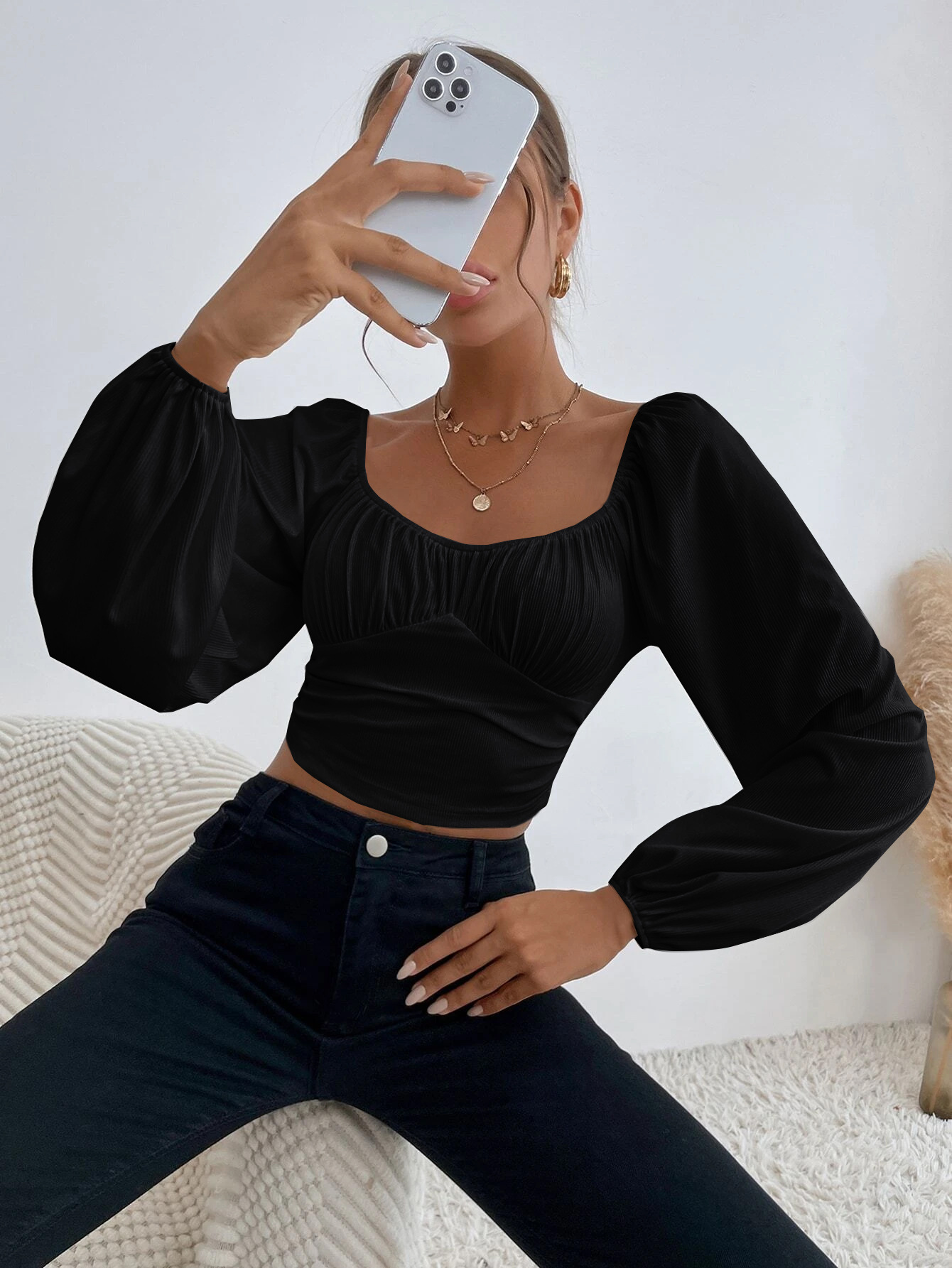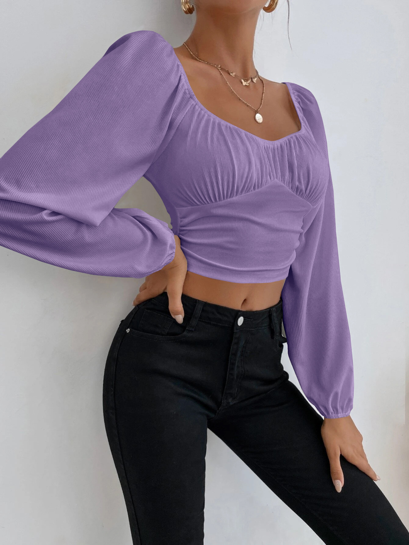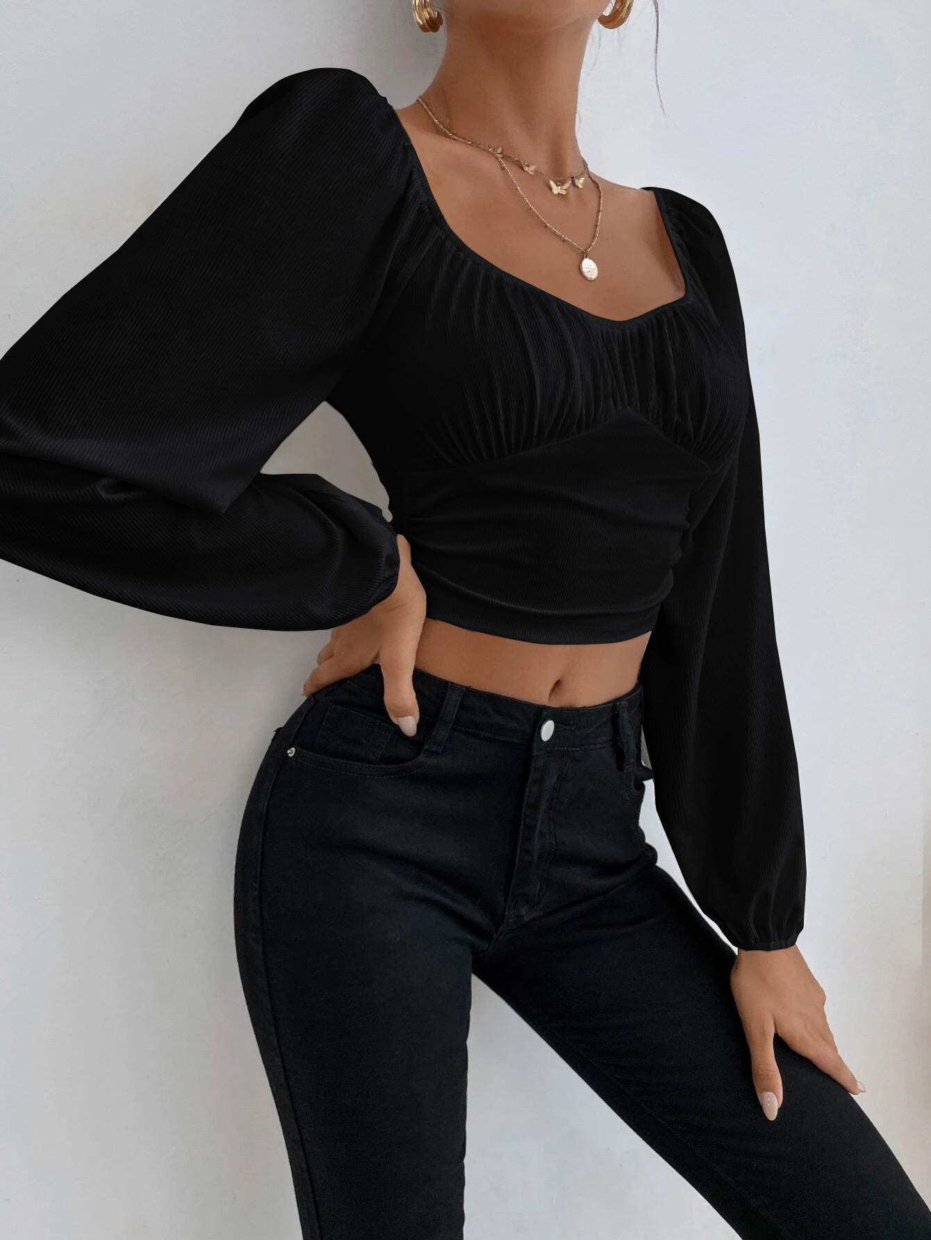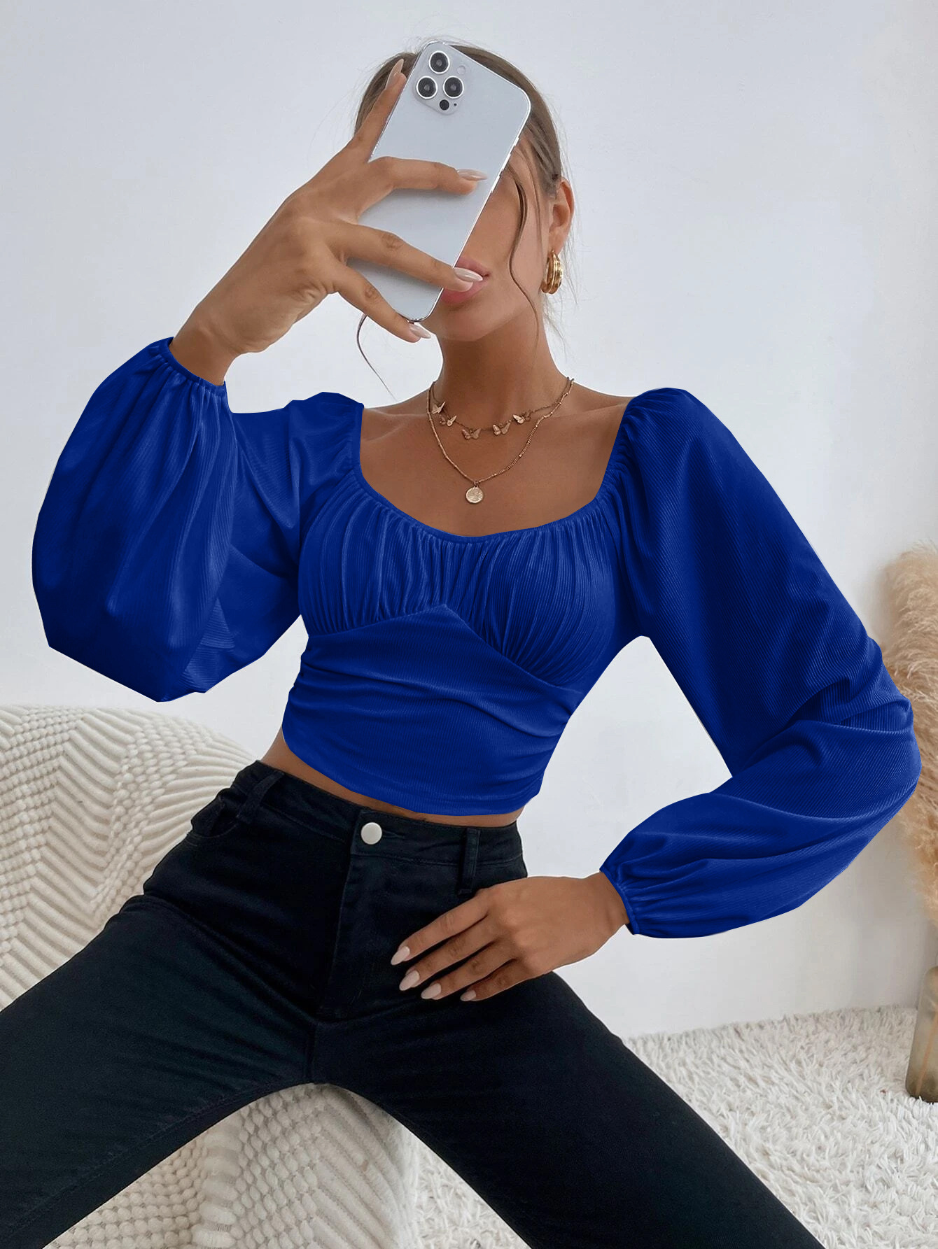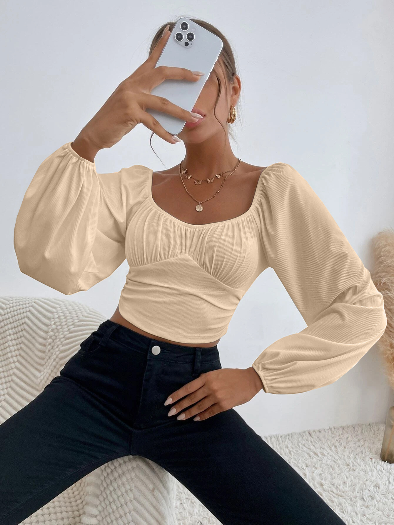 Sleeve Style: lantern sleeve