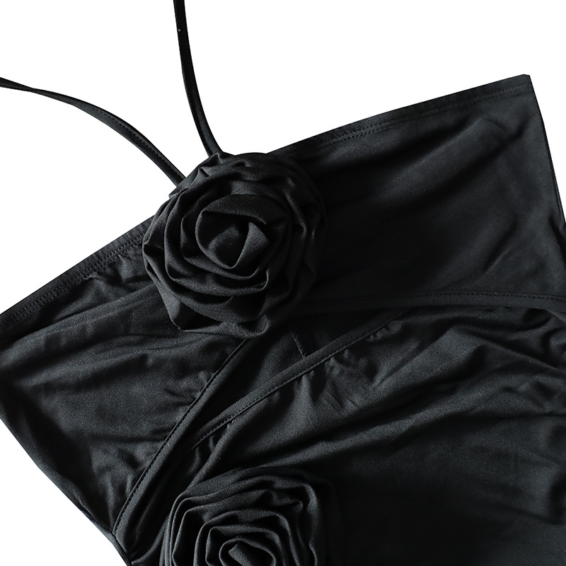 Halterneck 3D Floral Backless Cutout Dress