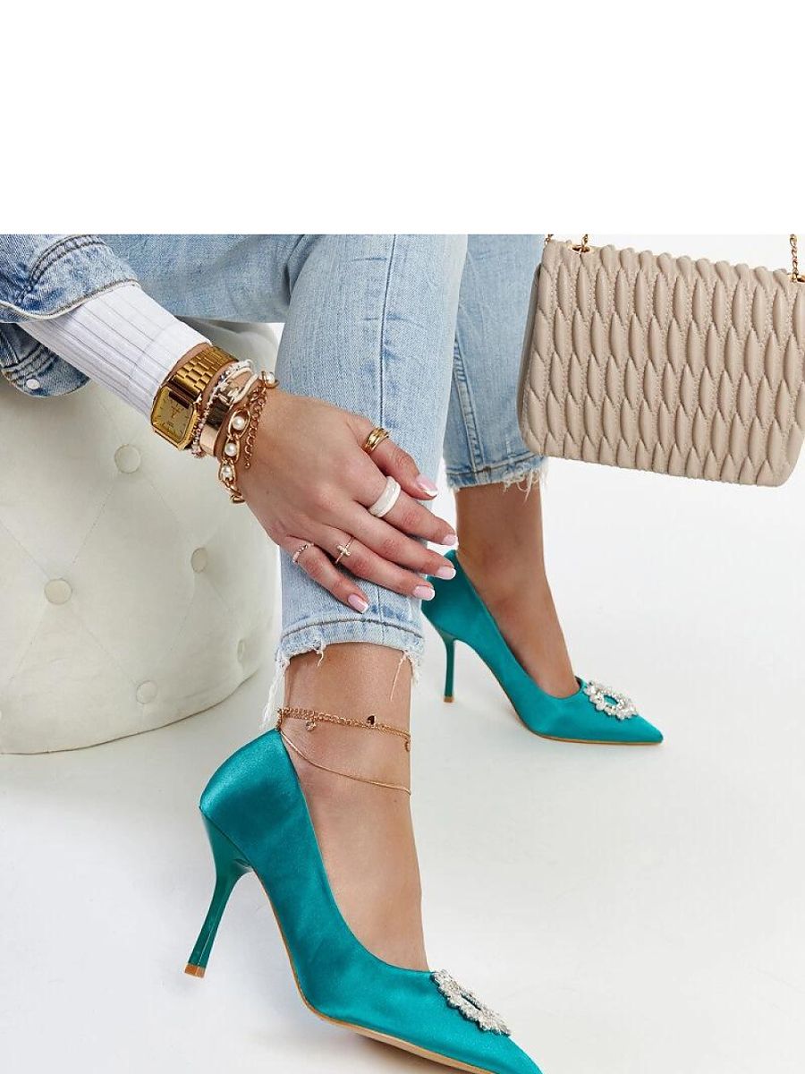 Green Susegana high heels are a perfect choice for summer days! Made of synthetic material, with a satin finish and embellished with zircons, they look extremely stylish and elegant. Their modern design will surely attract the attention of others.