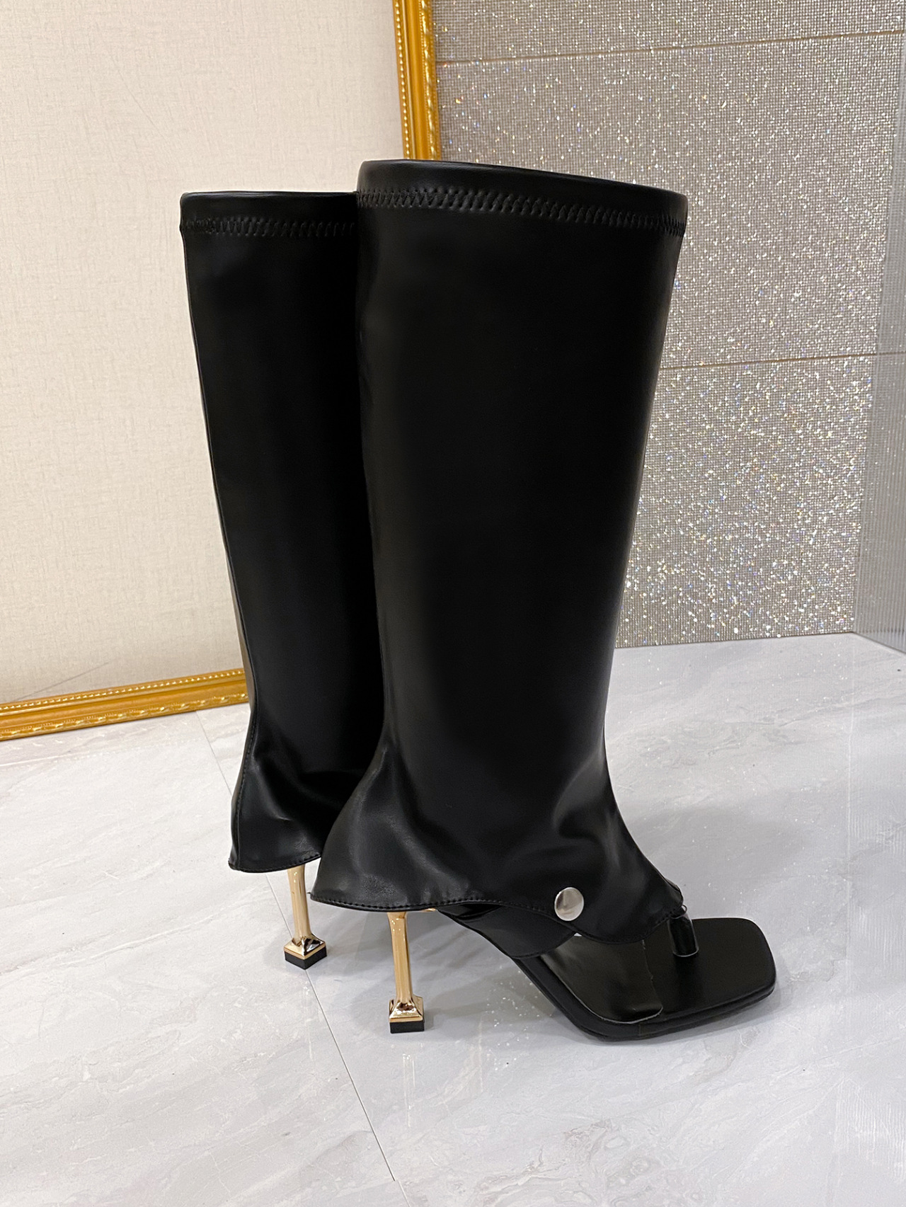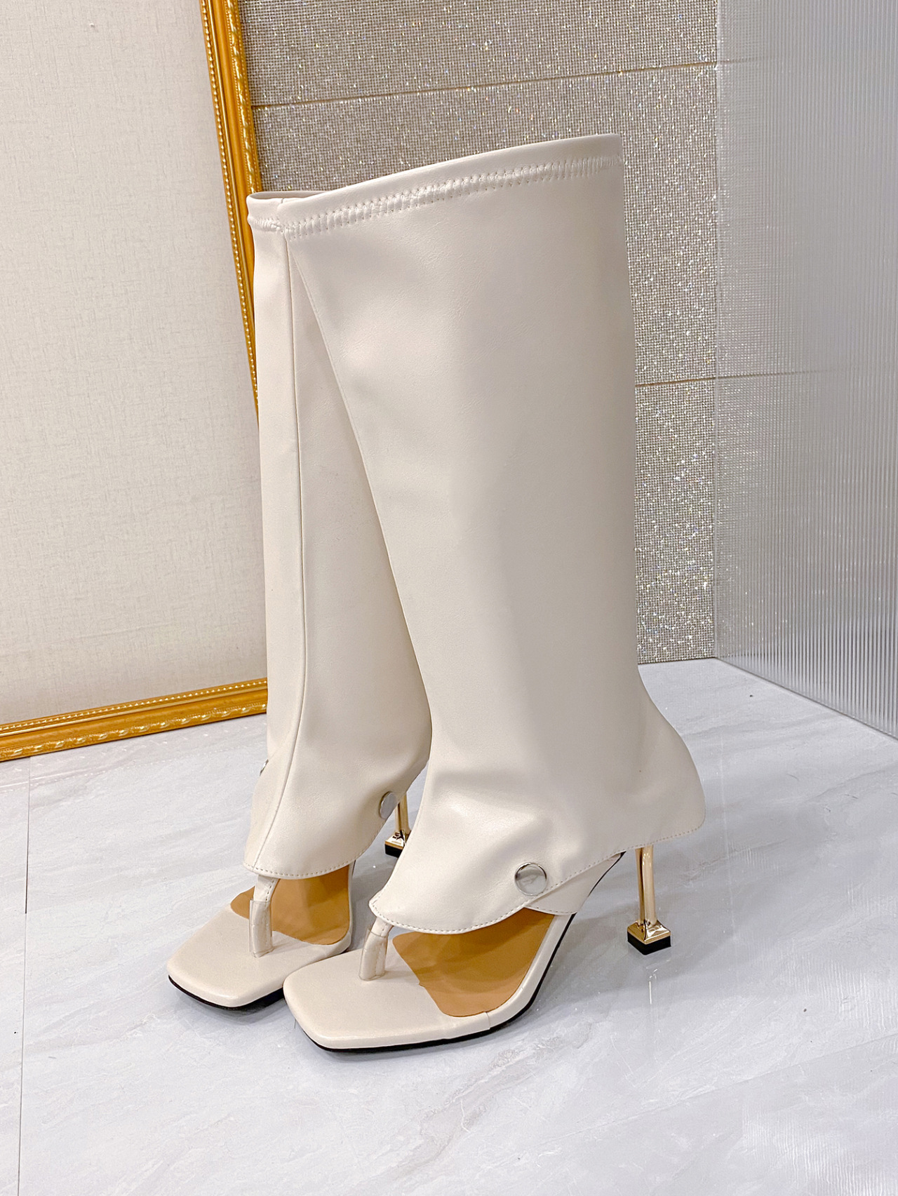 High-heel Thin-strap Toe-loop Square-toe Sandal Boots