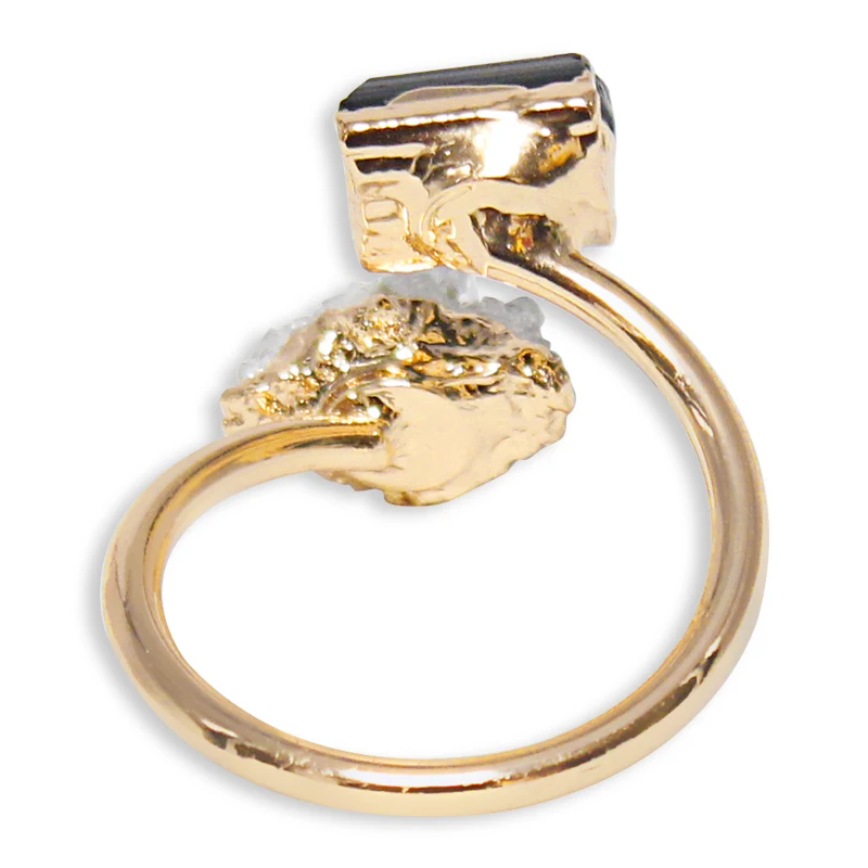Bague noire irrégulière en pierre druzy dorée, bijou fait main, taille réglable