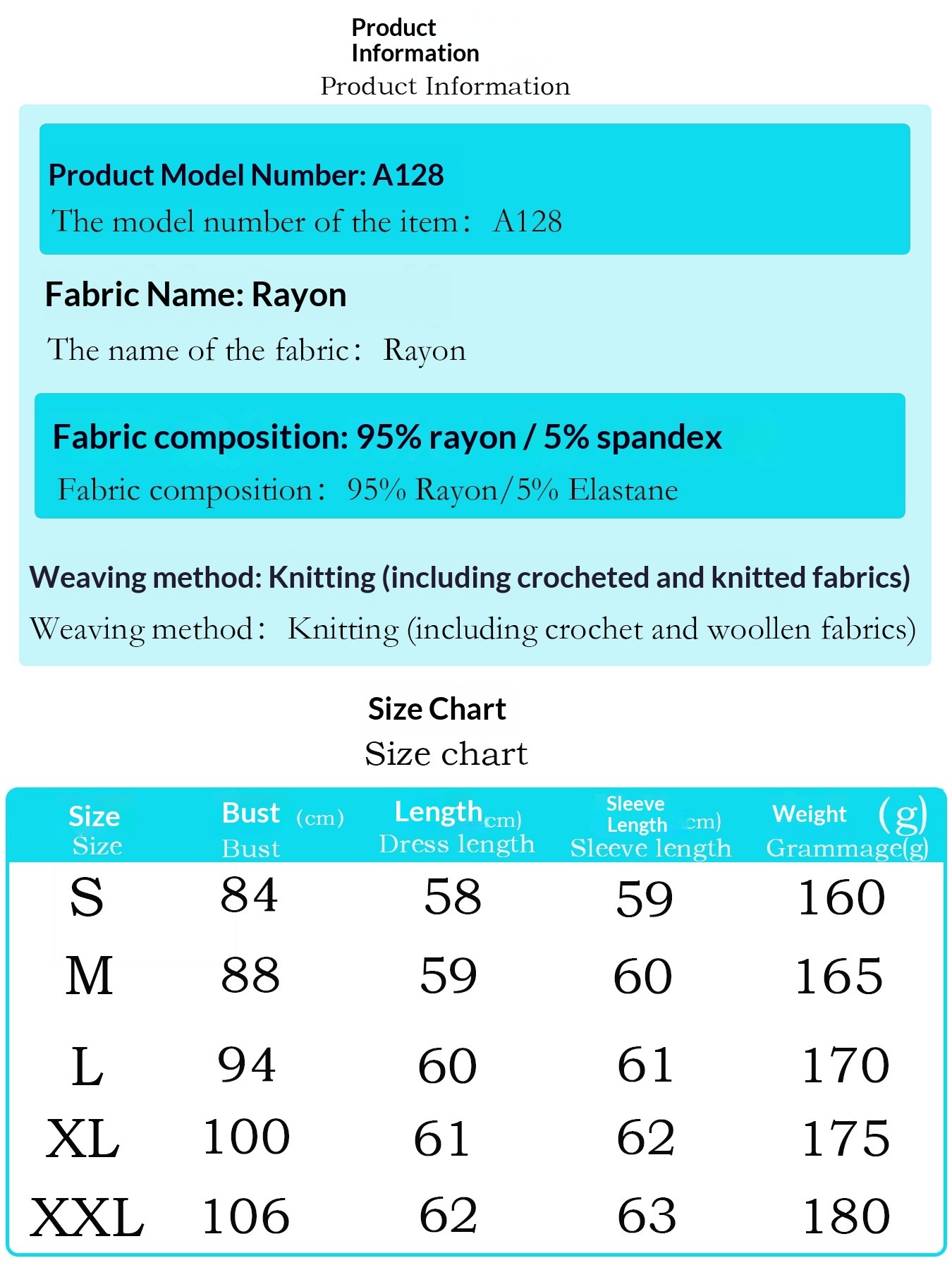 Sizes: S, M, L, XL, XXL