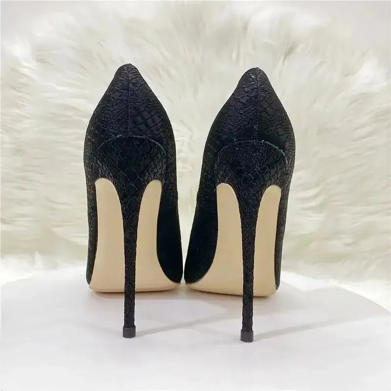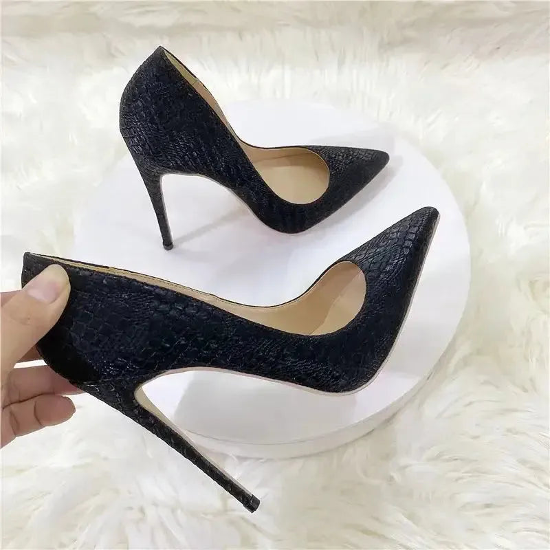 Take a walk on the wild side with our Stiletto Snake Skin Pattern High Heels Shoes! These daring shoes combine a fierce snakeskin pattern with a sharp stiletto heel for a bold and fearless look. Make a statement and turn heads wherever you go. Elevate your fashion game and embrace your daring side!