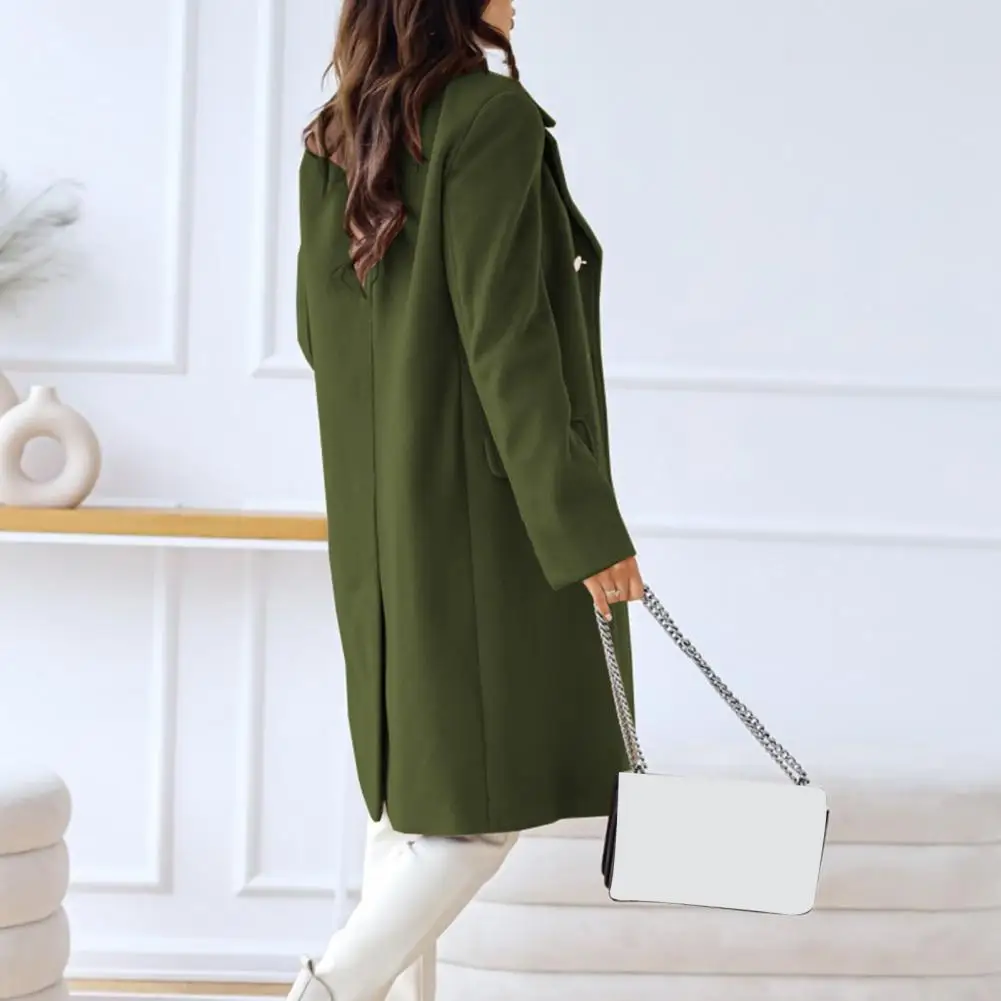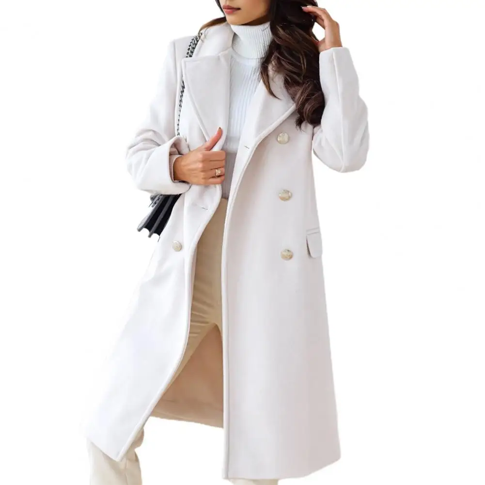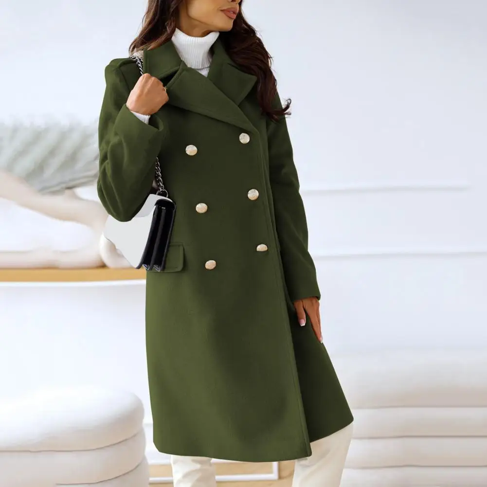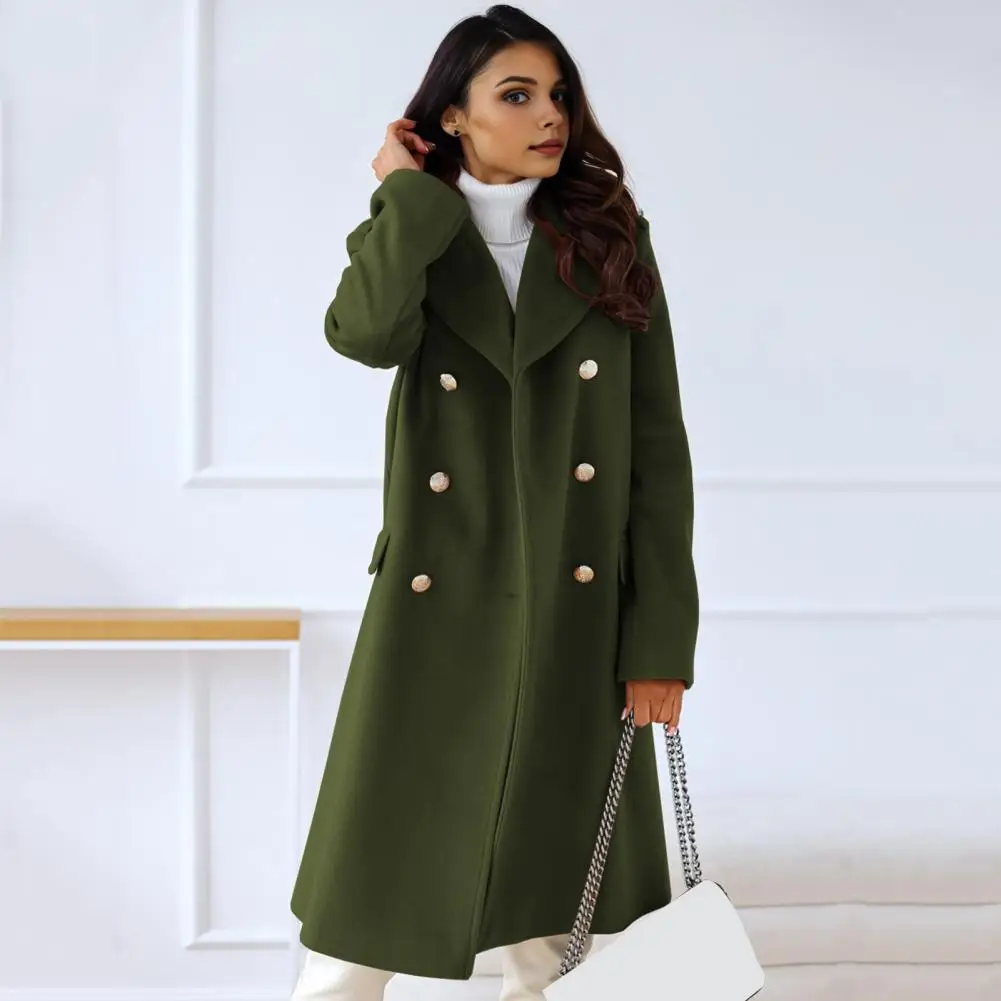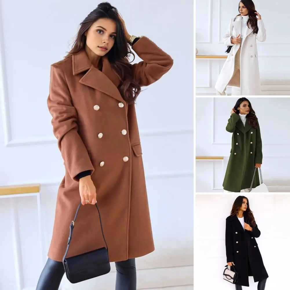 Women Winter Overcoat Turn-down Collar Pockets Pure Color Double-breasted Cardigan Loose Fit Coat Thermal Long Sleeves Commuting Dating Winter Coat