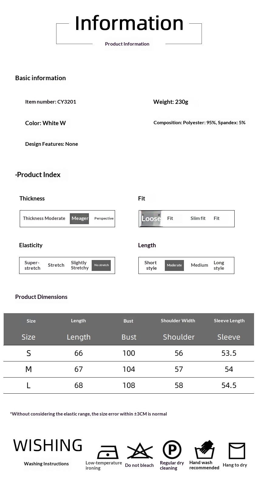 Size: S, M, L