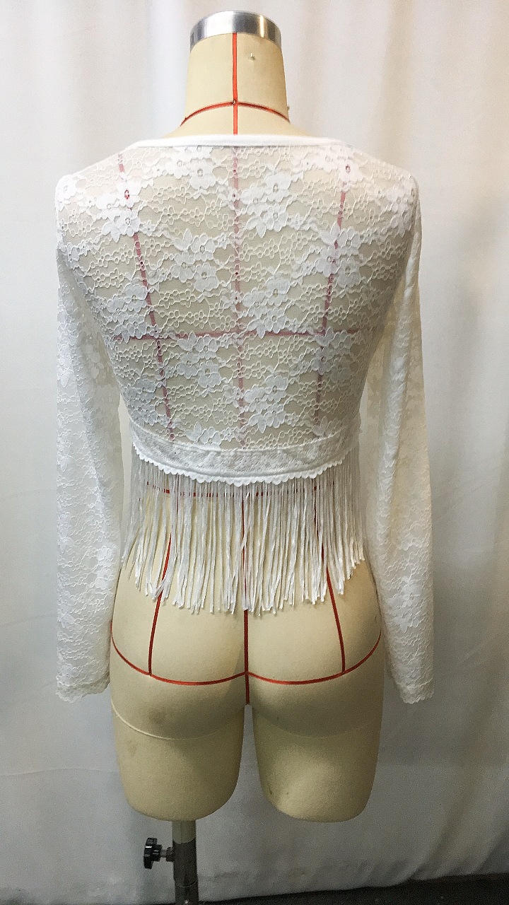 Women's Elegant Lace Fringe Thin Solid Color Hollow-out T-shirt