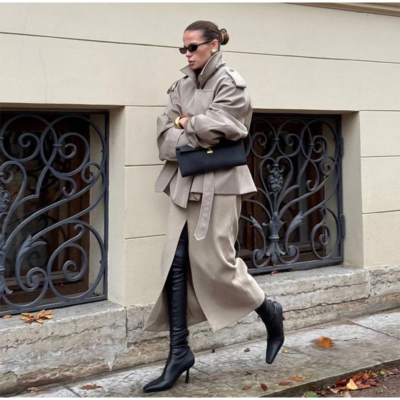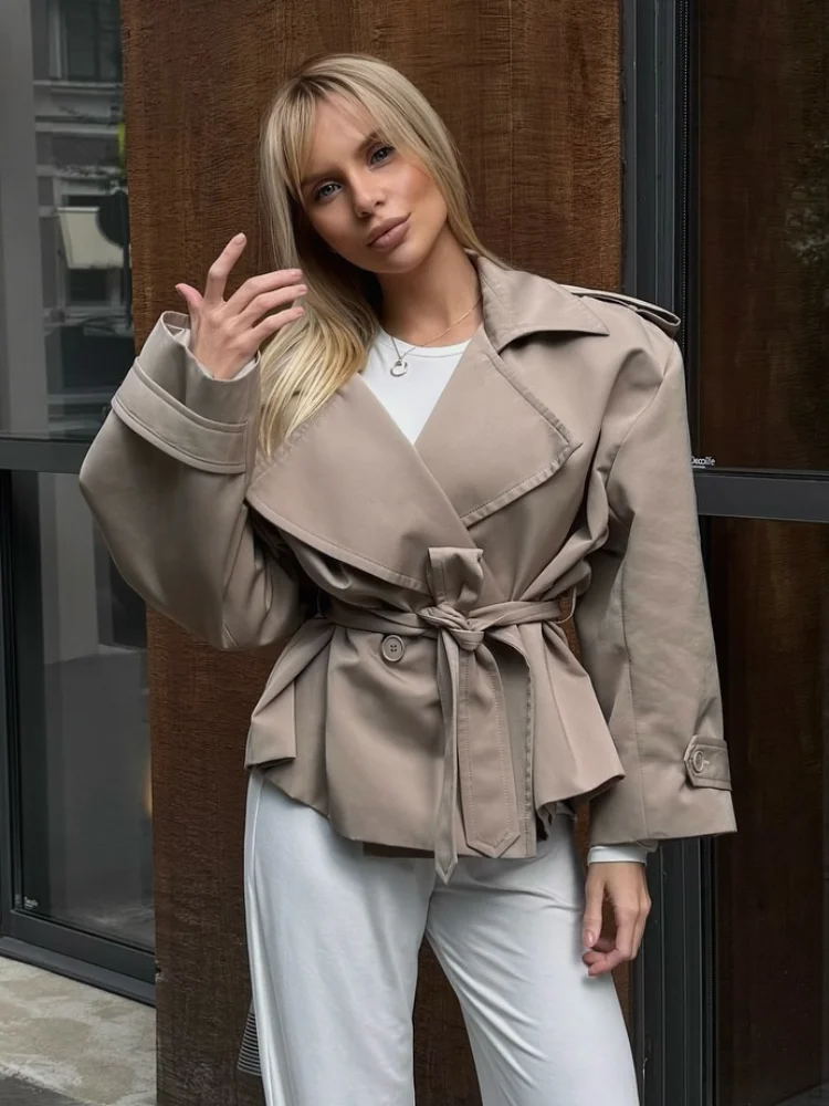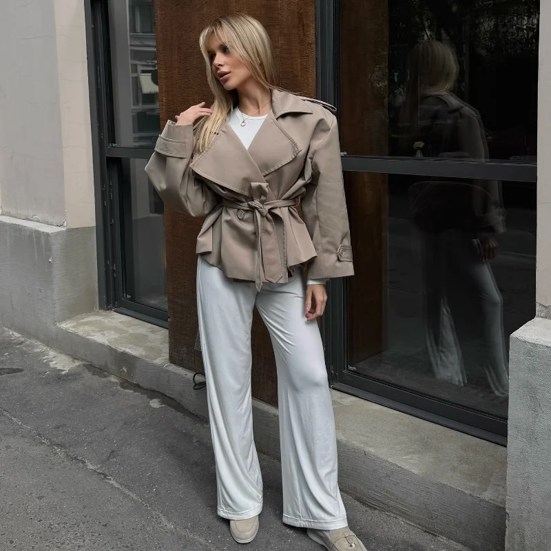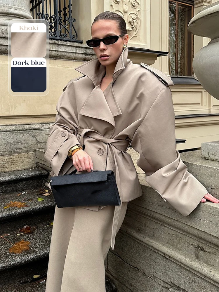 Featuring a chic lace-up design, this trench coat adds a touch of elegance to your autumn/winter wardrobe.
