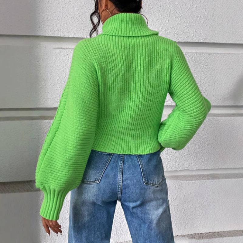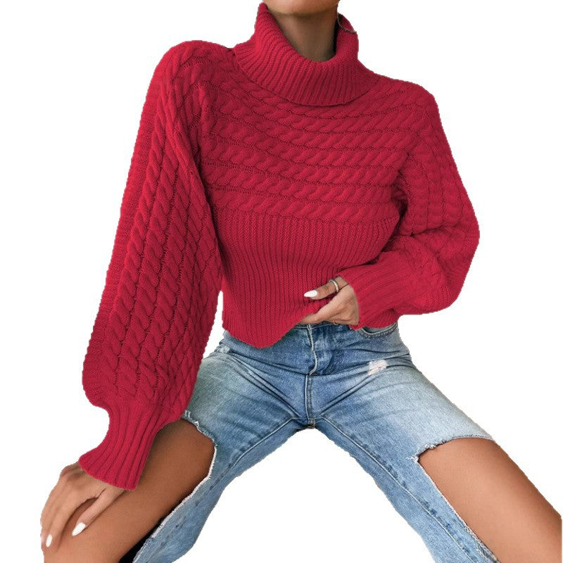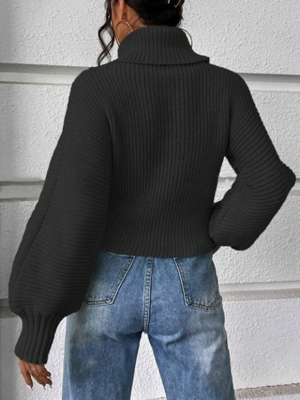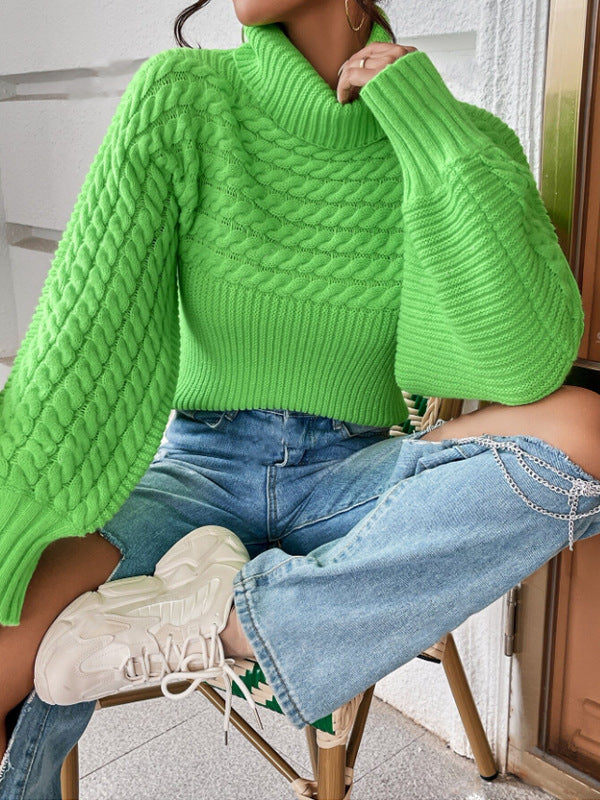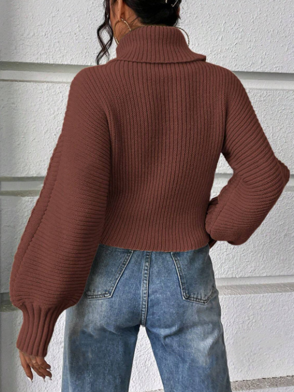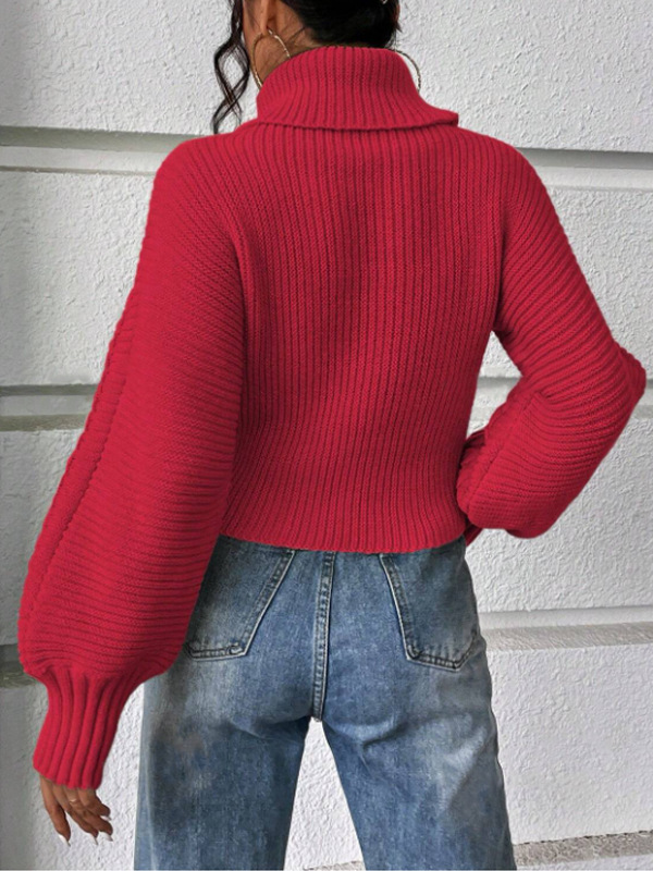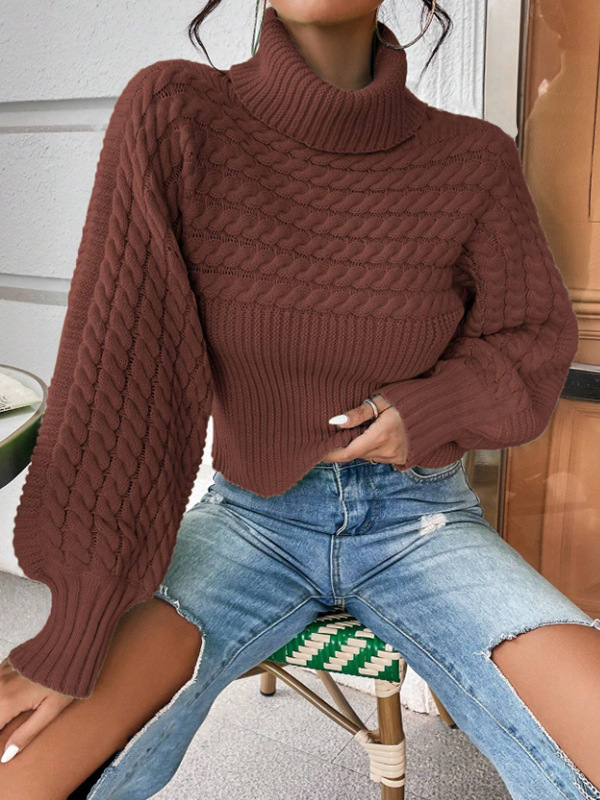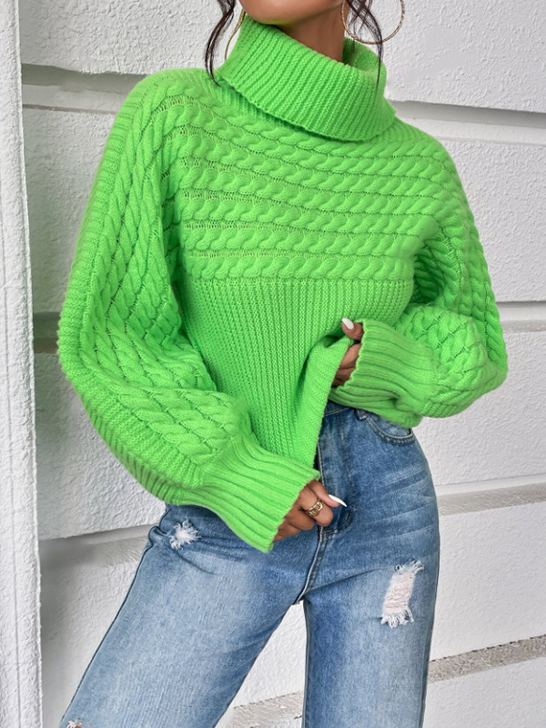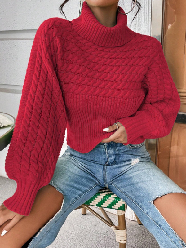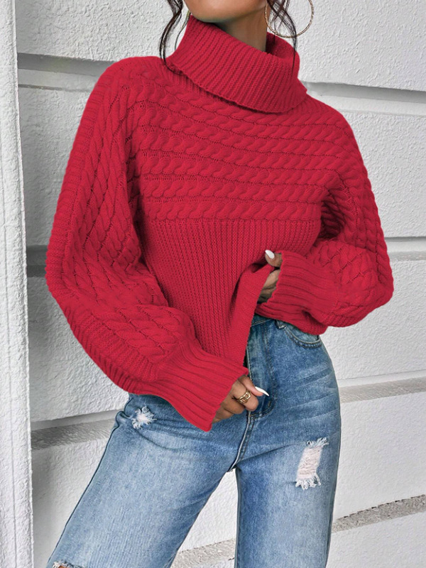Womens Solid-Color Knitted Sweater With Cable Knit And Ribbed Texture